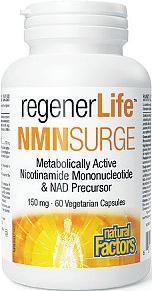 B3 that the body relies on to make the anti-aging metabolite nicotinamide adenine dinucleotide (NAD+) NAD+ is found in ever y cell in the body and is essential for hundreds of metabolic processes such as converting nutrients into energy and repairing cells NMNSurge is part of the RegenerLife anti-aging line of supplements formulated for whole -body rejuvenation and longevit y Each vegetarian capsule provides 150 mg of NMN as a factor in the maintenance of good health Non-GMO Vegetarian- and vegan-friendly 60 VCaps save 15%