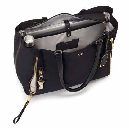 The TUMI Valetta large tote is my favorite travel bag. I have it in navy blue to match my carry-on bag. It conveniently attaches to that bag (which fits in the overhead storage bin) while I am wheeling through airports. And I can fill it with everything I need at my fingertips for the journey, including my computer, phone, snacks, books and a change of clothes or shoes, plus my makeup and even my toiletry bag. $495. tumi.com.