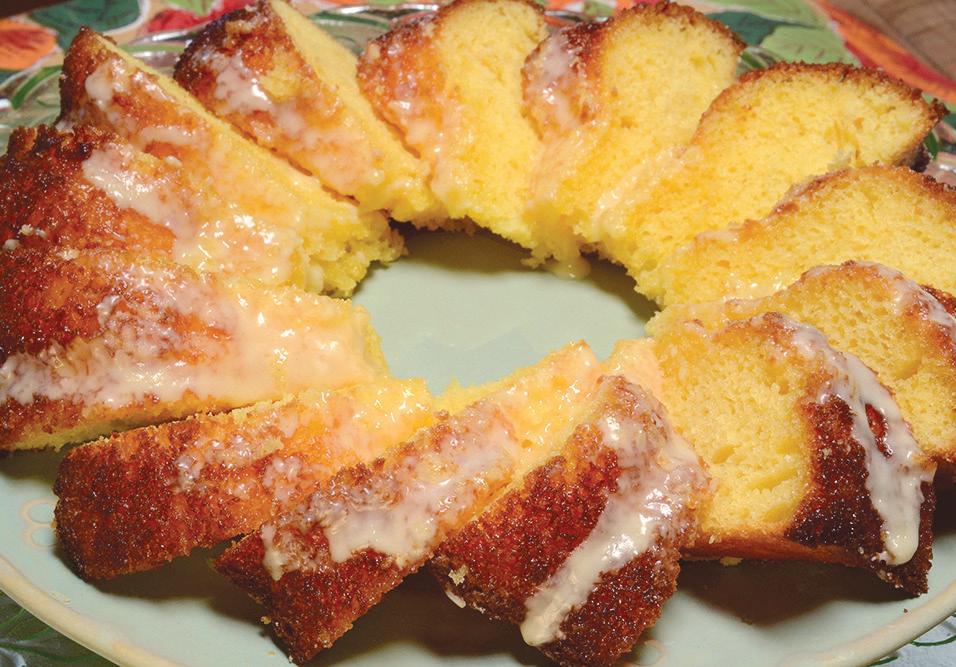 The Harvey Wallbanger cake grabs its rich avor from the vodka, Galliano liqueur and orange juice that you nd in the classic Harvey Wallbanger cocktail. Add some eggs, cake mix and pudding, and this special treat backs up like a brilliant yellow sun ower and absolutely melts in your mouth. A little sprinkling of powdered sugar or, better yet, a drizzle of glaze, and that’s all you need to relive the kitchen memories from the ‘60s and ‘70s.