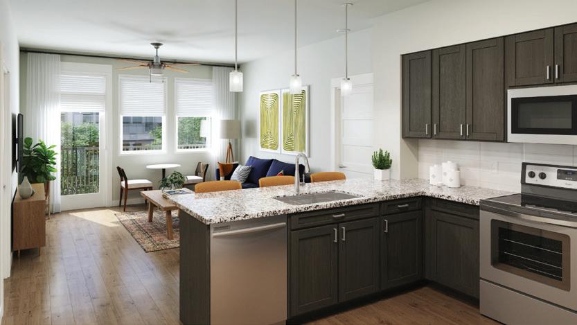 The community was designed by Todd & Associates (architect) and is being built by MT Builders (general contractor) with Envision Interiors taking the lead on interior nishes. All apartment homes will feature smart home technology with energy e cient appliances and offer the convenience of lock and leave for those resi-