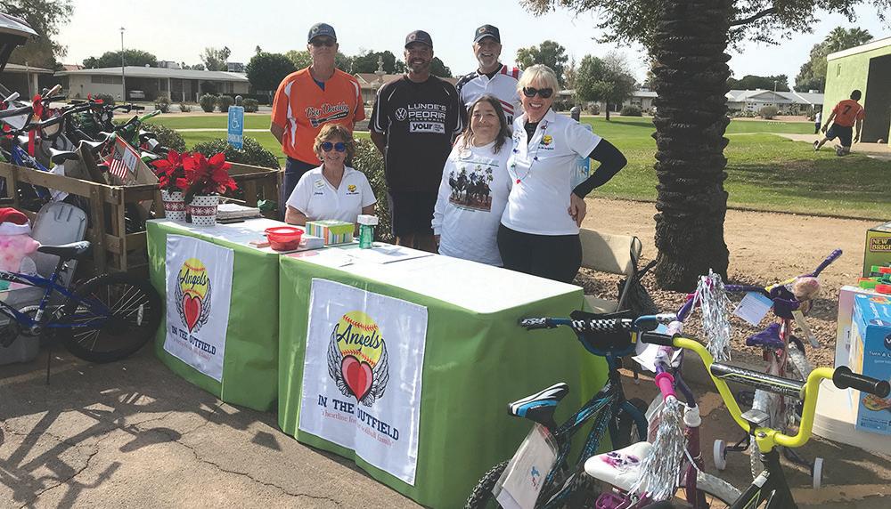 In the back, softball players Mark Kosalas, Scott Cole and Gary Franklyn, and, in front, Angels in the Out eld, Christy Burton, Louisa Glaviano and Donna Laufer. (Sun Cities Senior Softball Club/Submitted)