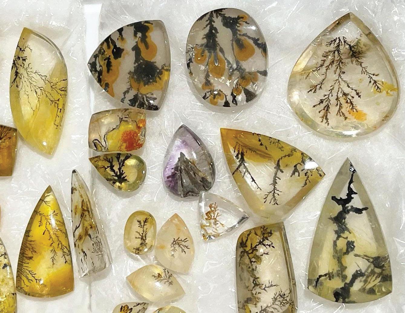SEVERAL EXAMPLES OF DENDRITIC QUARTZ FROM BRAZIL. THE INCLUSIONS ARE CLEAR. (GEMS IN GEMS/SUBMITTED)