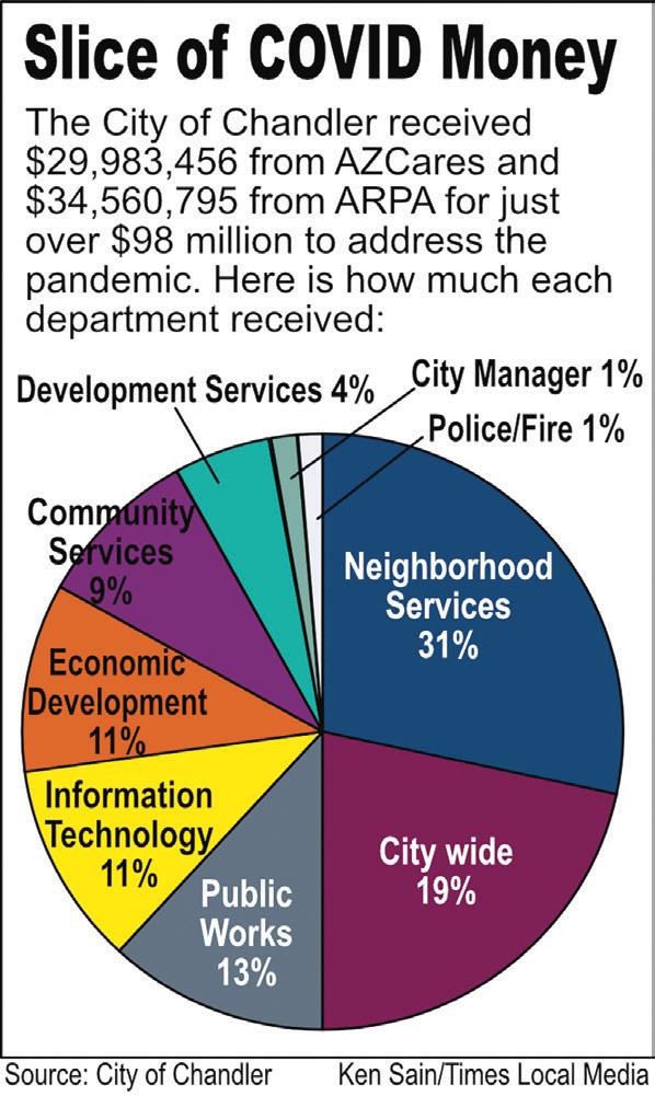 Housing supply improves, prices won’t See page 27 BY KEN SAIN Staff Writer In 2019, the City of Chandler was looking for ways to help its older residents. especially those on fixed incomes. Officials looked at their neighborhood enhancement coordinator and said, “What can we do?” “I was tasked with coming up with a new program that we could introduce to our community,” said Priscilla Quintana, who is the city’s neighborhood enhancement coordinator. “In the research, I found that 6% of our population in Chandler was living on a fixed inSee HOUSING on page BY KEN SAIN Staff Writer The universal free meals that Chandler Unified and other school districts have been providing to their students could end this summer. Senate Minority Leader Mitch McConnell (R-Kentucky) apparently told fellow Republicans the program was never intended to be permanent and that many in his party object to the $11 billion annual price tag as the federal deficit continues to grow. They also want schools to get back to normal in the waning days of the pandemic. That’s one reason McConnell opposed including the free lunch program in the omnibus spending bill that funds the government through the end of this fiscal year. Congress approved free meals at the nation’s schools as part of its first COVID-19 stimulus bill in March 2020. It gave districts U.S. Department of Agriculture waivers to feed an additionSee GOLDEN on page See LUNCH on page Dana Alvidrez, city transportation engineer for Chandler, references a graphic illustrating road traffic inside the Traffic Management Center. Turns out the city looked into whether artificial intelligence can help traffic flow on Chandler streets. For the surprising conclusion, see page 18. (David Minton/Staff Photographer) Low-income seniors find welcome help from city Free lunch may soon end for many CUSD students Loyd and Jane Buchanan examine the household cleaning supplies and personal hygiene products beign provided for free at the Senior Store as part of Chandler’s Golden Neighbors program. (David Minton/ Staff Photographer) al 10 million American students and also relaxed some regulations so they could deal with supply chain problems and staffing issues. The students, who are 18 and younger, get up to two meals a day, including lunch and breakfast. Unless Congress takes action, the program will end July 1. However, two July 31, 2022 www.santansun.com Relentlessly local coverage of Southern Chandler An edition of the East Valley Tribune FEATURED STORIES Residents balk at city housing plan News Page 3 Chandler eatery devoted to avocados Business Page 25 High school sports on live TV Sports Page 31 Chandler kids in big musical. G OUT Page 34 More Business 25 Neighbors 28 Sports. Faith 33 GetOut. 34 Directory 37 BY KEN SAIN Managing Editor Ruth Jones’ bid to upset incumbent Mayor Kevin Hartke in Tuesday’s election is a true underdog affair while the race to fill three other seats on City Council pits an incumbent against four challengers. Hartke, after serving two terms on Council and one term as mayor, has name recognition. He also has a huge advantage in campaign finance funds. And he’s the incumbent. Those three advantages usually lead to victories. However, not always. There have been a handful of cases where a scrap- py underdog has been able to pull off the upset, said his challenger. “Don’t count me out,” Jones said after second quarter campaign finance reports were filed through July 16th. Hartke raised only $17,226 in the second quarter of this year, but entered that period with nearly $229,000 in the bank, according to his most recent finan- cial statement. He spent about $28,600 from April 1 through July 16, giving him more than $216,000 going into the final weeks of the primary campaign. Jones raised the least amount of any of the seven candidates on the ballot who are running for a spot on the Council. She reported raising about $8,900 and headed into the final days of the campaign with a balance of $216. “It’s not about the money, it’s never been about that,” Jones said. “The reason why I’m going to win is I’ve gone out and talked to the people who live here. I’ve listened, and because I’ve done that, they know care.” In the other council races, incum- bent Matt Orlando is seeking a second term while members Rene Lopez and Terry Roe are termed out. Lopez is one of six Republicans seeking the nomina- tion in Congressional District 4 to run against incumbent Greg Stanton. Roe is one of the two Republican candidates for the state House in LD12, which cov-