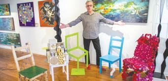 Scottsdale artist Jeff Zischke shows off several pieces for Chairz exhibit after he has partnered with 20 other artists and local creatives for the project to benefit the Scottsdale Artists’ School. (David Minton/Staff Photographer)