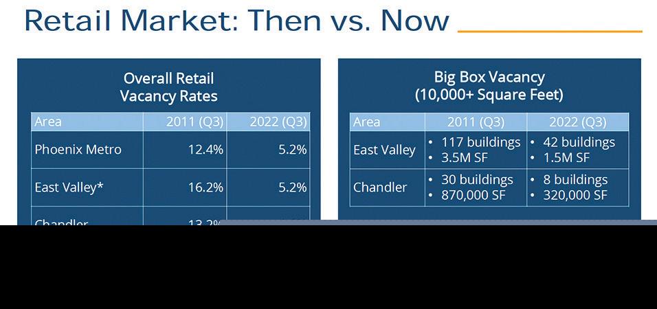 Businesses were shutting down, vacancy rates were up. At the intersection of Alma School and Elliott roads, 53% of the retail space was vacant. The strip mall at