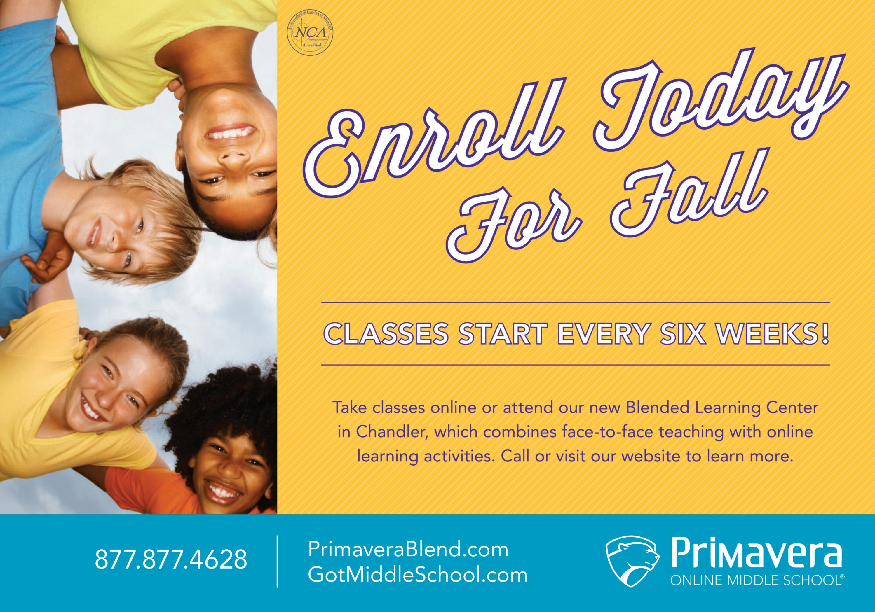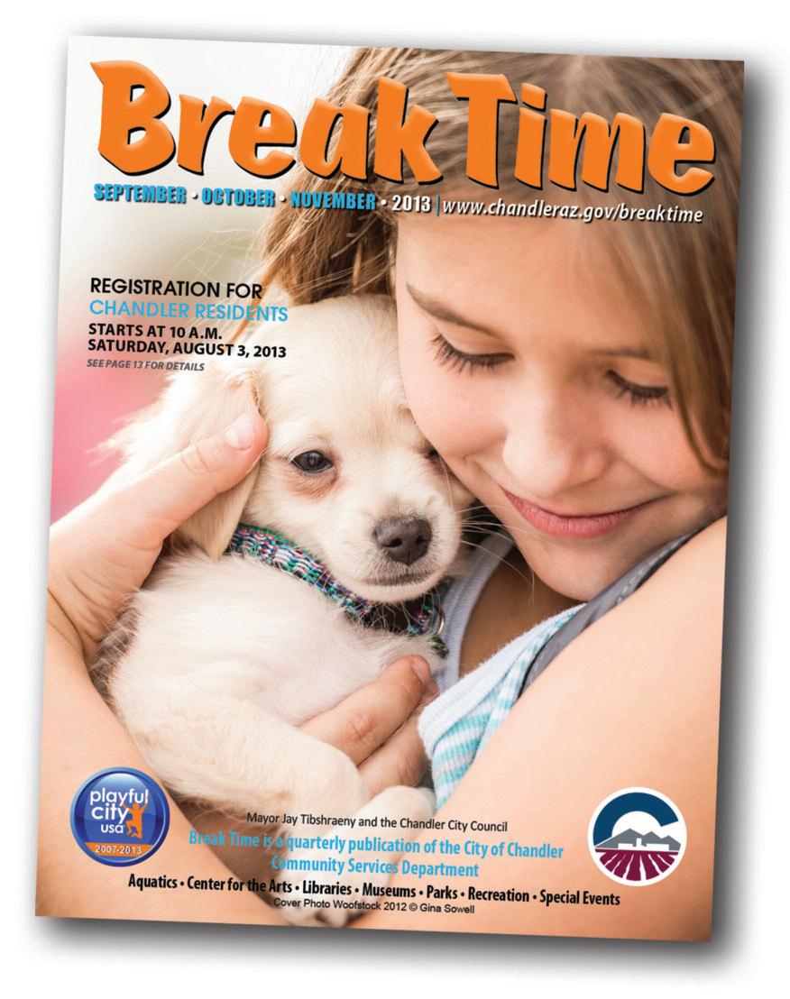 The fall Break Time magazine outlining all-ages recreation classes, youth camps and special events for September, October and November is available at libraries and city offices as well as aquatic and recreation centers and online at www.chandleraz.gov/breaktime. Registration is open! For more information, call 480-782-2727.
