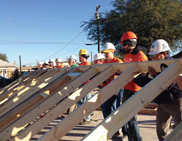 LIFTING UP NEW BEGINNINGS: Dozens of Chandler volunteers who build and sell homes for a living kick off Habitat for Humanity of Central Arizona’s first reconstruction of a local family’s home. Submitted photo SEE RECONSTRUCTION PAGE 5