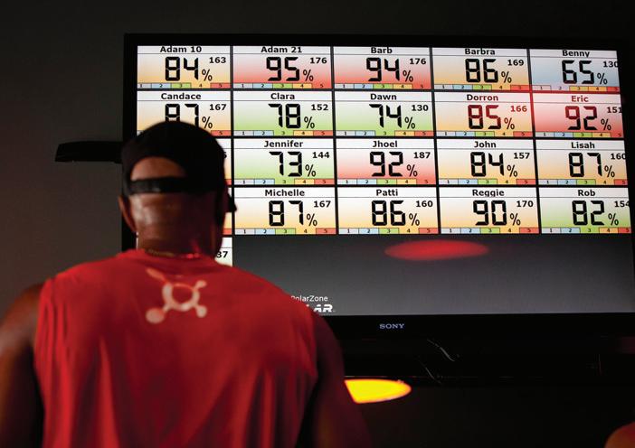 KEEPING TABS ON HEART RATES: Members of Orangetheory Fitness wear heart rate monitors during their workouts, which continually display their results on a big screen during the one-hour sessions. Submitted photo