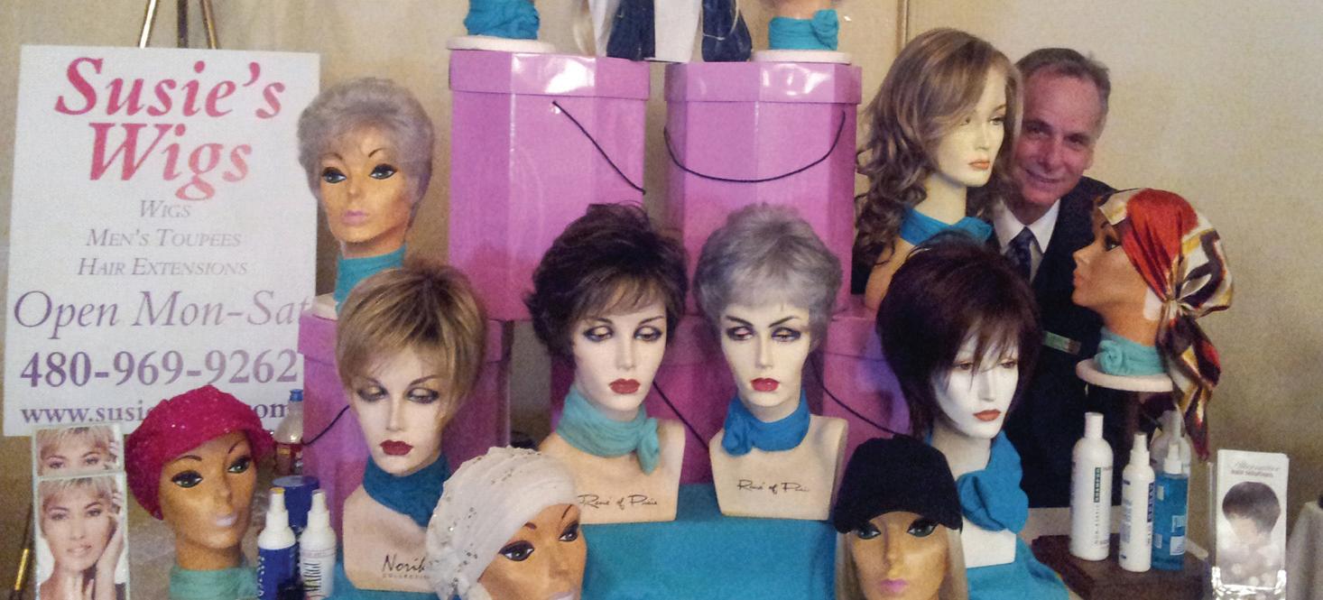 WIGS: Desert Cancer Foundation of Arizona board member Kevin Hartke is in Susie’s Wigs booth during last year’s luncheon. Submitted photo