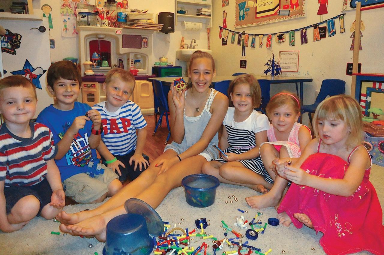 BUSY AND HAPPY KIDS: When Angela St. Louis’ daughter, Samantha, middle, is home from school on vacation, she enjoys helping her mom in her in-home preschool class. Submitted photo