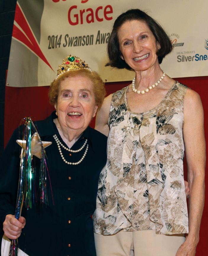 WINNER: SilverSneakers instructor Donna Horwitz, right, congratulates Grace Ruby for her 2014 Richard L. Swanson Inspiration Award.