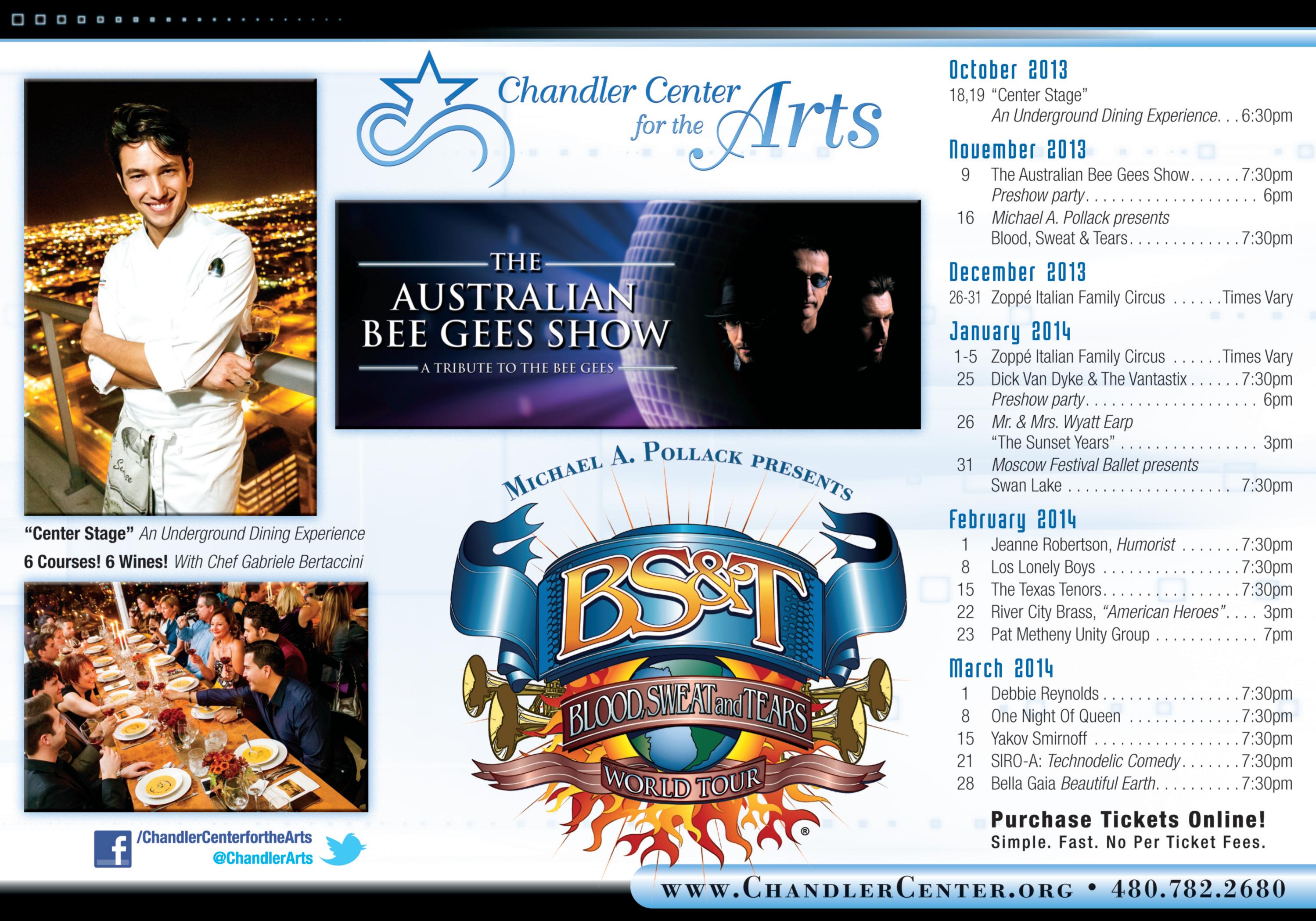 For more information and to purchase tickets to any of these shows online, visit ChandlerCenter.org, or call the box office at 480-782-2680.