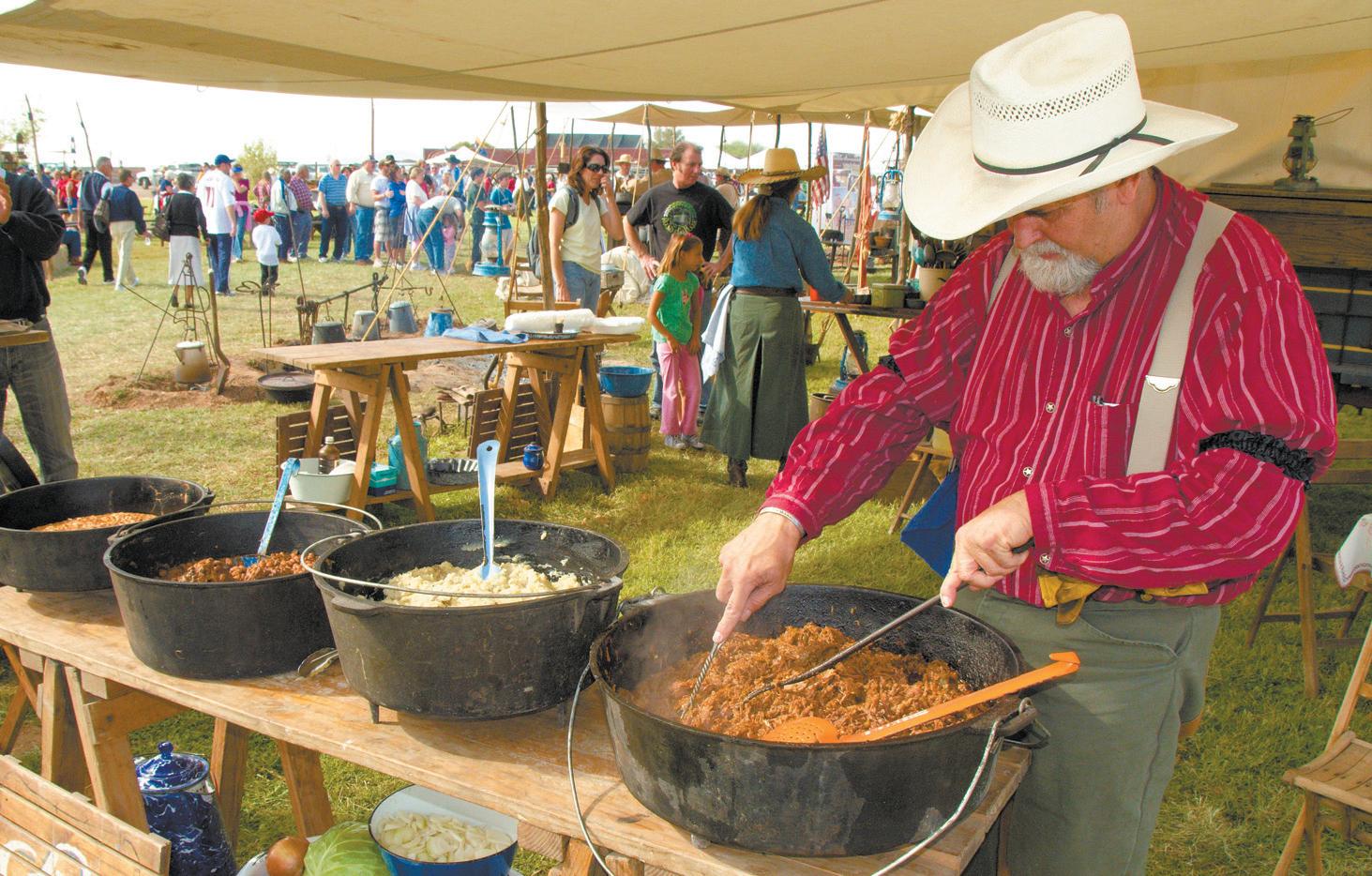 The event on Saturday runs from 9 a.m. to 8 p.m. The main Saturday attraction features 12 chuck wagons competing for awards based on appearance, taste and texture of period food. The teams will cook and prepare their own unique meal, which includes meat, bread, potatoes, beans and a dessert. Reynolds says each chuck wagon makes about 50 meals.