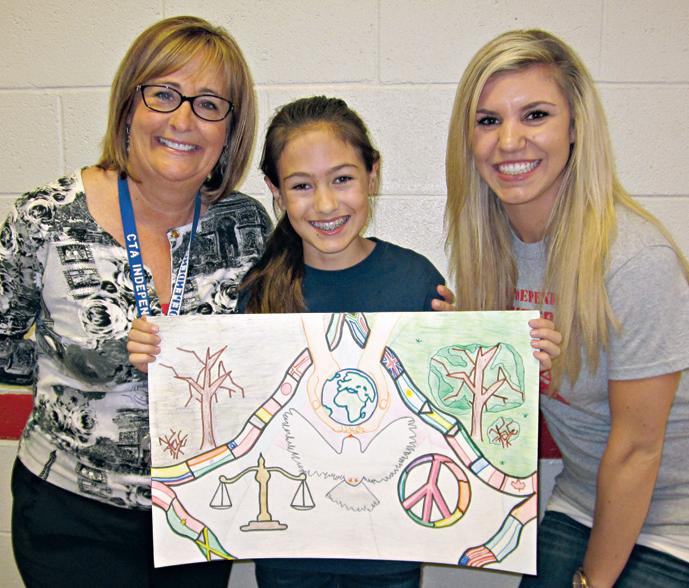 PEACE PRIZE: Sixth grader Devon Baggot, shown with Principal Florence Swanson and sixth-grade teacher Gaylynn Doran, is the winner of the Sun Lakes Lions Peace Poster Contest. She will be honored at a November awards event with a certificate and cash prize presented by the Sun Lakes Lions and Intel Corporation. Submitted photo