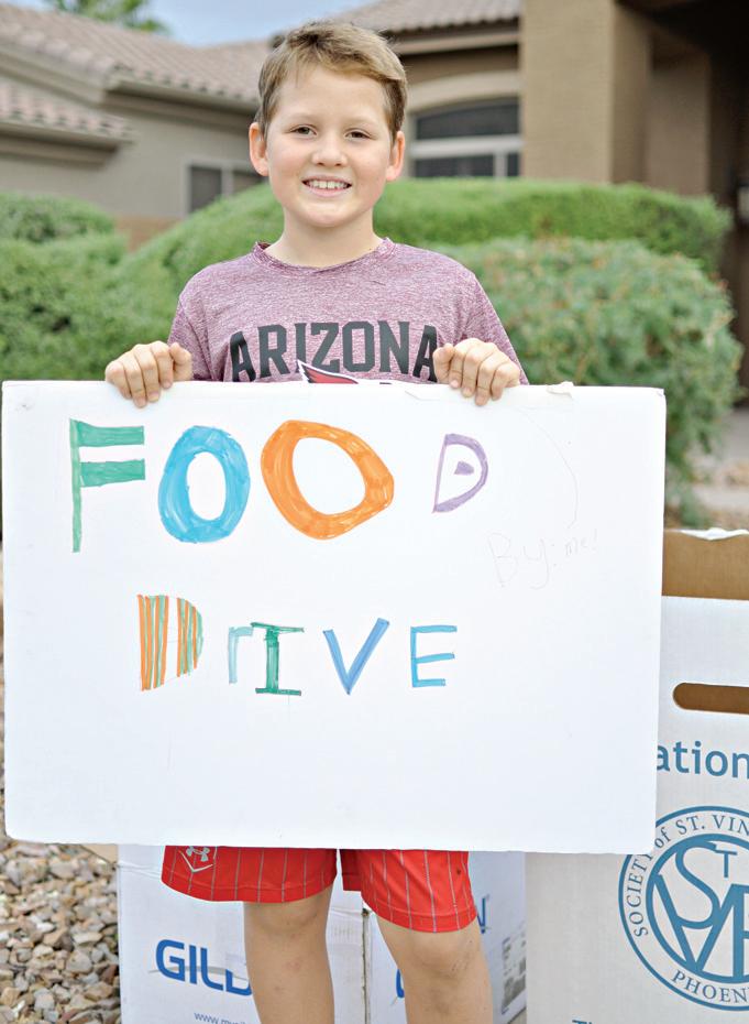 Helping HANDS: Jacobson fourth grader Paul Kadavy of Chandler created a plan challenging his fellow fourth graders to donate food to help the homeless at St. Vincent de Paul. He worked hard to organize the food drive, creating flyers, stickers and a speech to encourage his classmates to participate. Submitted photo