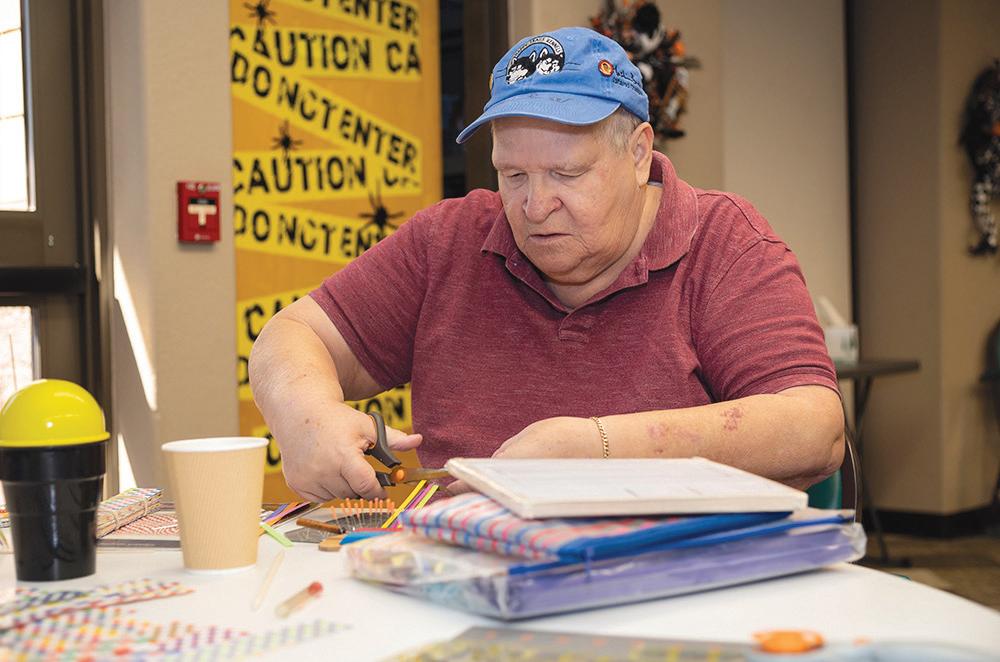 Clem McLay’s hands are busy. He is at Marana’s Senior Center, weaving narrow strips of colorful paper. Twenty-five min utes later he has a bookmark.