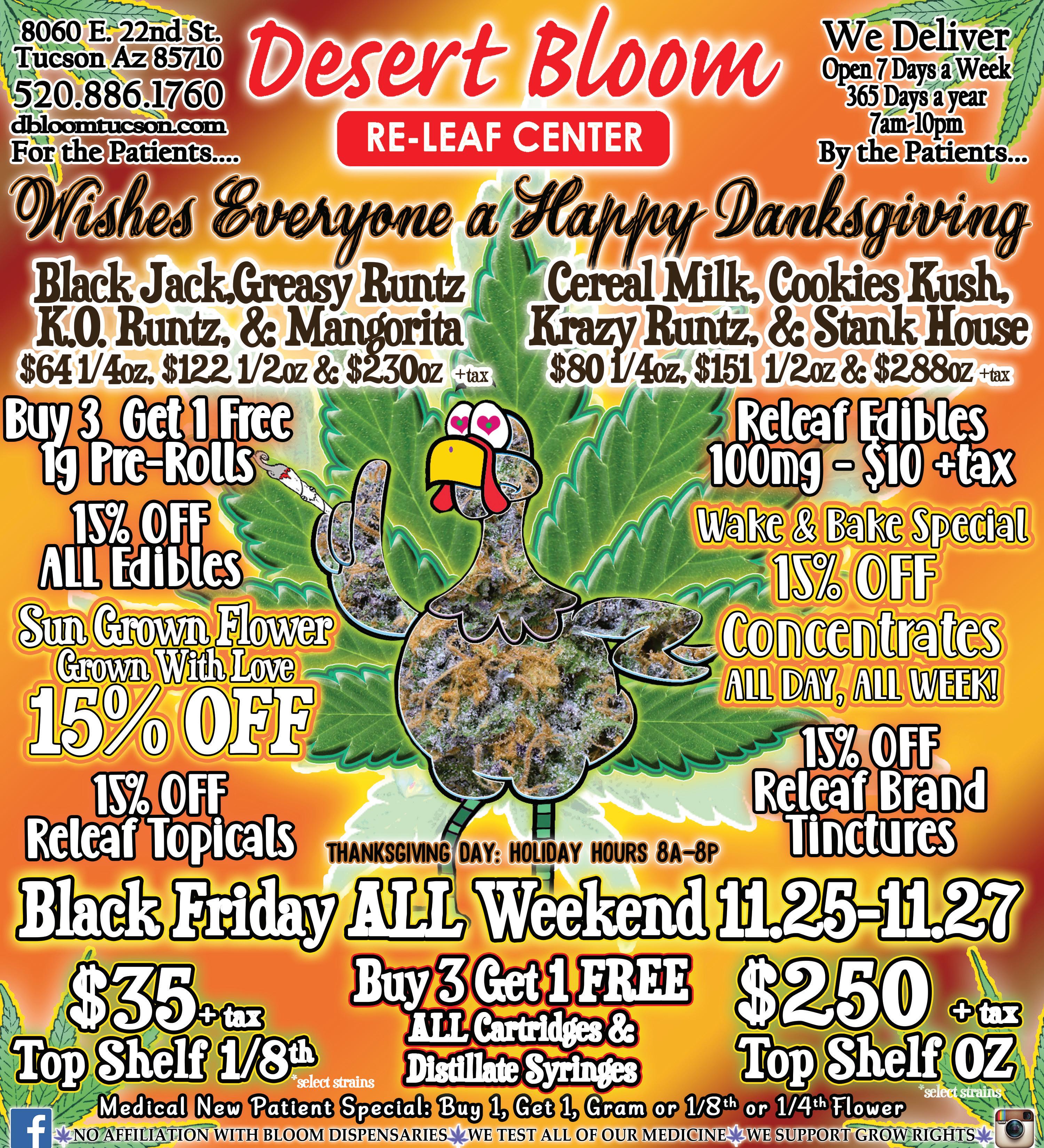 FIRE STATION 8 GETS A MAKEOVER | LOCAL VENDORS AT REID PARK NOVEMBER 24-30, 2022 • TUCSONWEEKLY.COM • FREE JAKE SHIMABUKURO BRINGS A HOLIDAY ‘ALOHA’ TO THE STAGE earthshealing.org 5 DAY SALE! Green Wednesday thru Sunday 30% 40% OFF Earth Extracts ‒ Mohave Reserve High Grade ‒ Connected ‒ Alien Halo Edibles ‒ Baked Bros Holiday Cocktail and Dining Guide