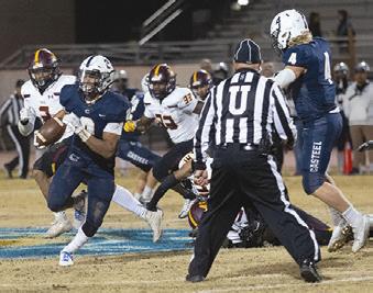Senior quarterback Christopher Arvi so II dropped back to pass with just over a minute left to play and found nothing to his liking as he rolled to his left. Ar viso then reversed field and came all the way outside the right hash and uncorked a bomb down the right sideline. At the other end, Senior receiver Jaylen John son was able to go up and over a defend er to make the catch and then contorted his body to reach into the end zone with 51.4 seconds left for Mountain Pointe’s lone score.
