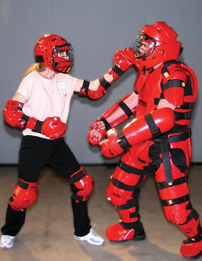 which is optional,” Quezada says. “The techniques used are effective, but simple to learn. You don’t have to take karate to do it.”