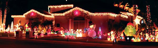 The Brown family, 632 W. Aster Ct., Chandler, have put up more than 100,000 lights, 30 inflatables, 100 lighted figurines, six large candy canes, two large candy cane arches, a large Christmas wreath, seven Christmas trees, six large snowflakes, three shooting stars, a decorated boat on the front lake, a movie