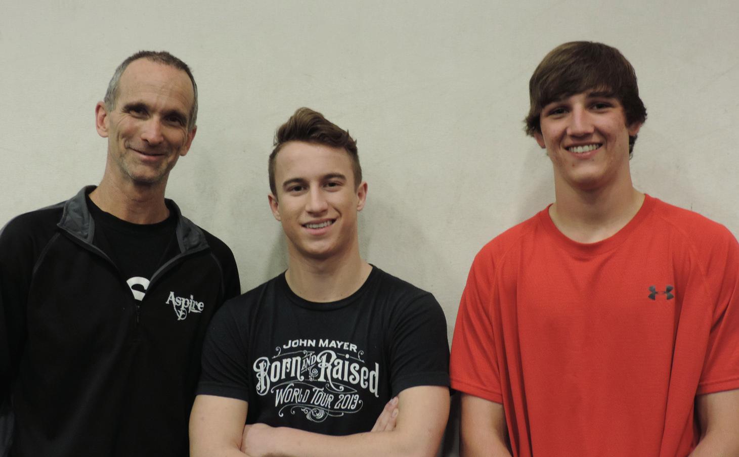 ASPIRATIONS: Scott Barclay, left, owner of Aspire Kids Sports Center in Chandler, Josh Browne and Jerrett Jensen. Barclay coaches Josh and Jerrett in trampoline and tumbling. Submitted photo