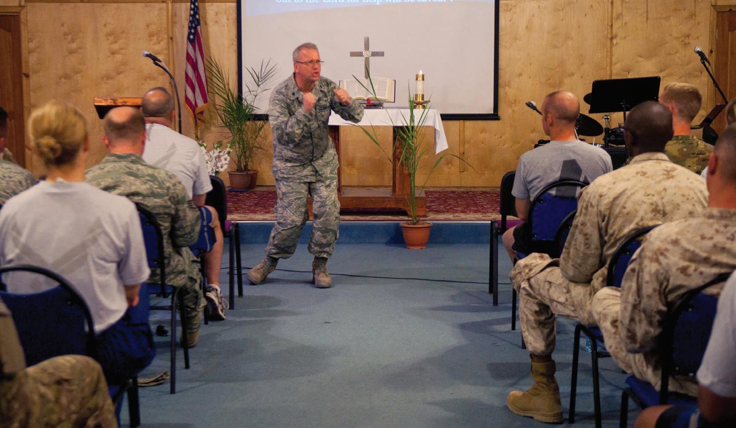 CHAPLAIN: Lt. Col. Michael Sproul preaches in Kyrgyzstan. Sproul is deployed out of the Air National Guard 161st Air Refueling Wing in Phoenix. Photo by U.S. Air Force photo/Staff Sgt. Robert Bennett