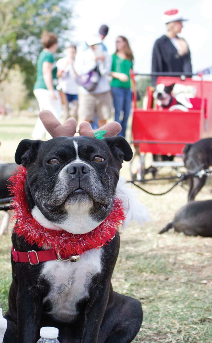 SLEIGH DOG: Louis from the Arizona Boston Terrier Rescue leads a pack of Reindeer Dogs to help raise money.