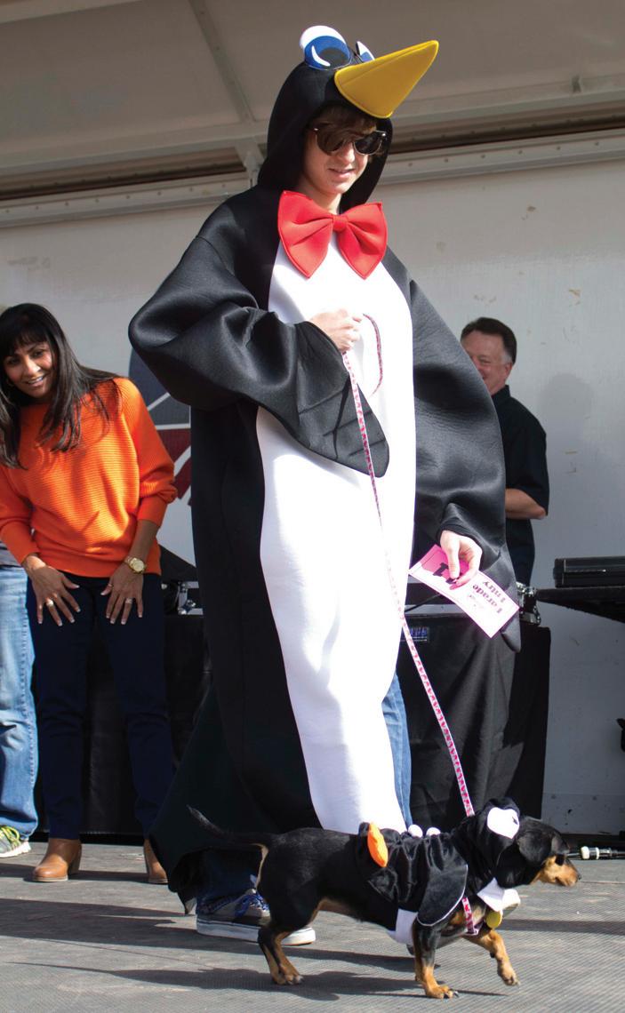 WADDLE THE DOG: Penguin master with Penguin-dog Ezme in the Pets on Parade contest.