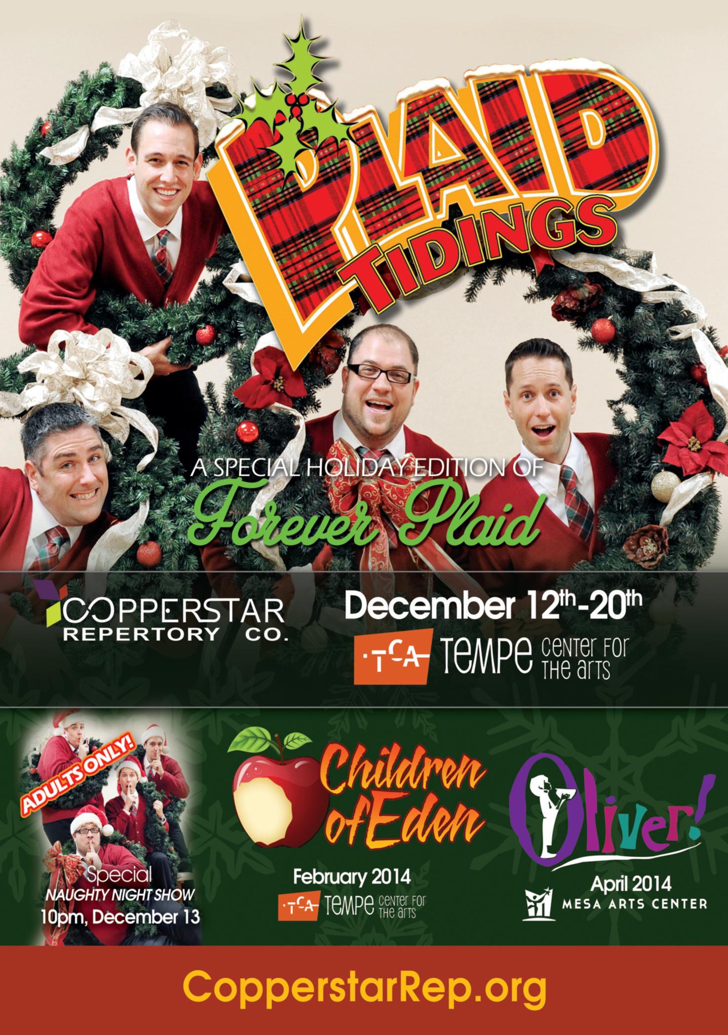 “Plaid Tidings: Forever Plaid’s Special Holiday Edition” will run Dec. 12 through 20 at the Tempe Center for the Arts. Frankie, Sparky, Jinx and Smudge return to weave the magic of the ‘50s and ‘60s into the holiday performance. Rosemary Clooney has encouraged the boys to return to Earth this year to make things right. Featured music includes 1950s tunes and holiday gems like “Let It Snow” and “Have Yourself a Merry Little Christmas.”