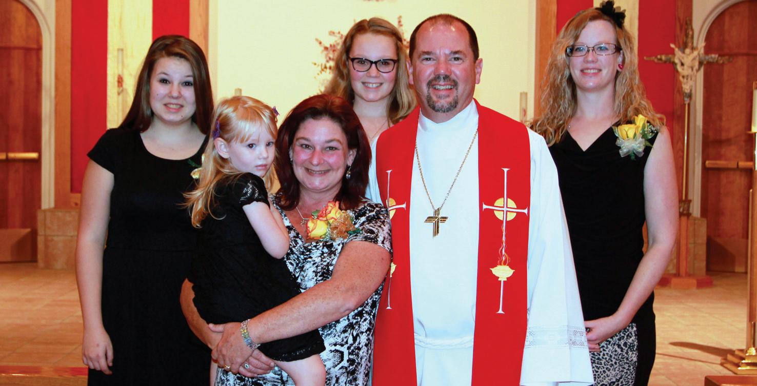 WELCOMED: Senior Pastor Ron Burcham celebrates with wife, Michelle, three of their daughters and one of their granddaughters. Submitted photo