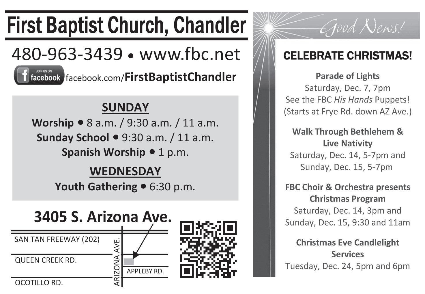 Let the SanTan Sun News help you publicize your church or temple’s events and activities in the Spirituality section by emailing details to News@SanTanSun.com. Include a brief description of the event, times, days, dates, cost or free, if registration is required, venue, address, publishable phone number, website if applicable and contact information for verification purposes. We welcome photos, which must be 300 dpi JPEGs or taken on a digital camera on the “best” or “highest quality” setting. Information is due 10 days prior to publication date. Submission does not guarantee placement.