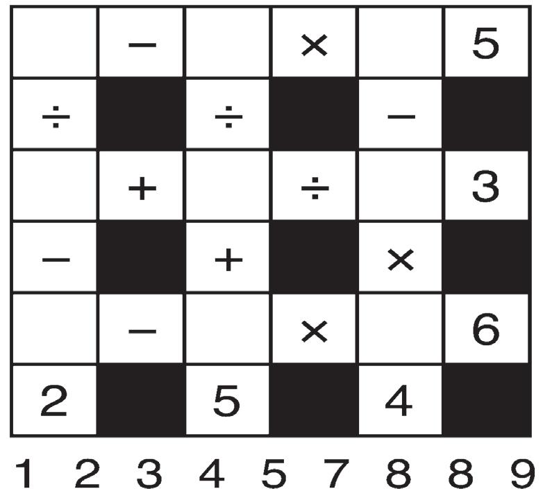 The idea of Go Figure is to arrive at the gures given at the bottom and right-hand columns of the diagram by following the arithmetic signs in the order they are given (that is, from left to right and top to bottom). Use only the numbers below the diagram to complete its blank squares and use each of the nine numbers only once.