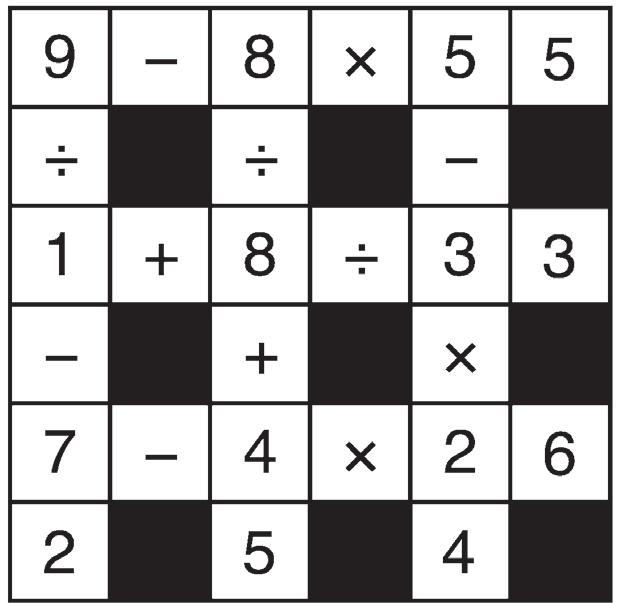 The idea of Go Figure is to arrive at the gures given at the bottom and right-hand columns of the diagram by following the arithmetic signs in the order they are given (that is, from left to right and top to bottom). Use only the numbers below the diagram to complete its blank squares and use each of the nine numbers only once.