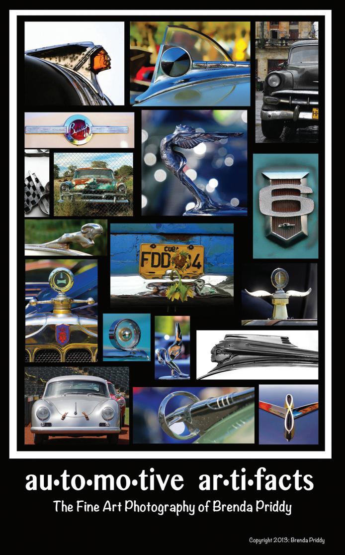 The display will feature fine-art photos of iconic automotive details. Many viewers might know Brenda Priddy’s photographs of test cars, taken as the cars are moved from the proving grounds in the desert. She’s often aimed her lens at auto details, such as nameplates, hood ornaments, architectural lines of car designs and more. Those details became the focus for this art exhibition.
