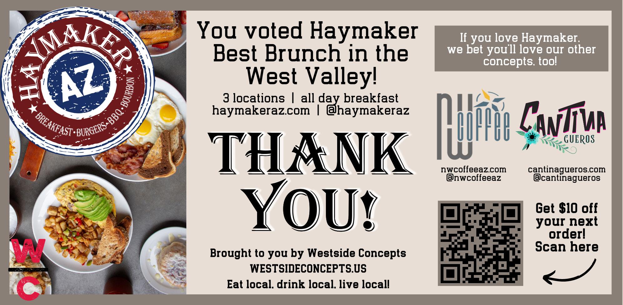 24762 N. Lake Pleasant Parkway, Peoria 623-566-1515, haymakeraz.com