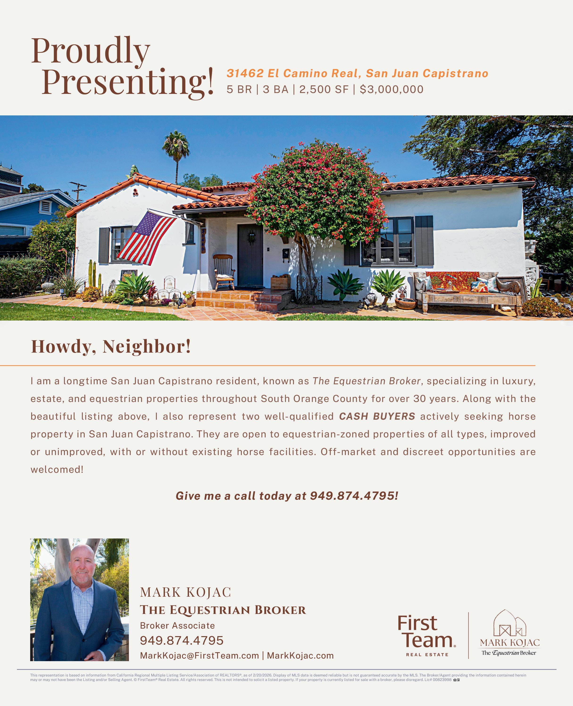 This year’s theme, “Trails, Tails & Traditions – 250 Years,” is especially meaningful as we celebrate not only the upcoming 250th anniversary of our nation, but also the 250th anniversary of Mission San Juan Capistrano. What a remarkable year to honor where we came from, who we are and the traditions that continue to bring us together.