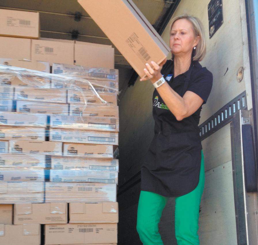 Every Thursday, a group fills about 124 bags for four Chandler elementary schools—Andersen, Frye, Bologna and Conley. All of the food packed into the bags is kid friendly and governmentregulated food, Thelander relays.