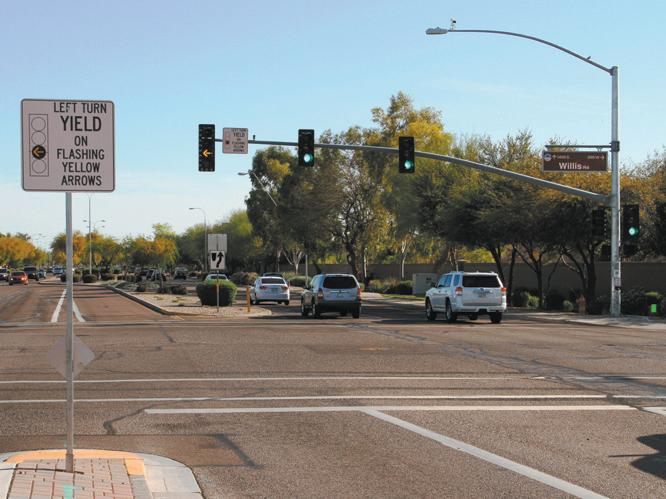 number of cities nationwide, including Mesa, Scottsdale and Gilbert. Chandler is working to eventually install the new flashing yellow turn arrows at all 114 intersections in the City that have left-turn arrows.