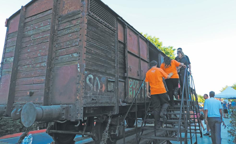 HOLOCAUST-ERA RAILCAR: The 11-ton, 33-foot-long railcar of the type and kind that Nazi Germany used to transport Holocaust victims to labor and death camps was purchased in 2012 by the East Valley JCC and shipped 11,000 miles from Macedonia to the Los Angeles harbor, then trailered to Chandler. STSN photo by Tracy House