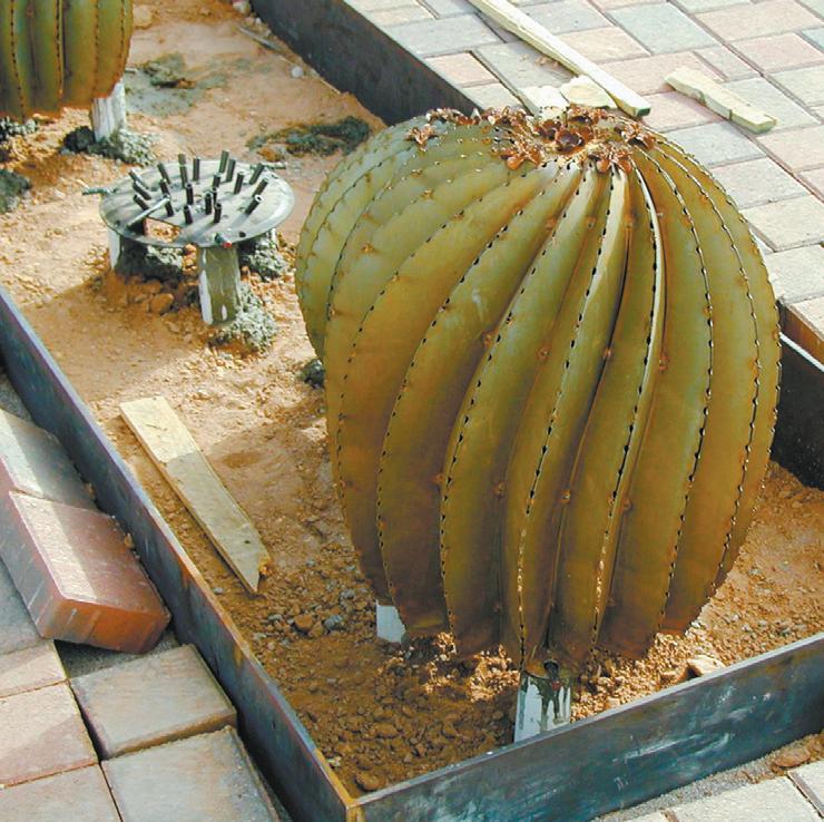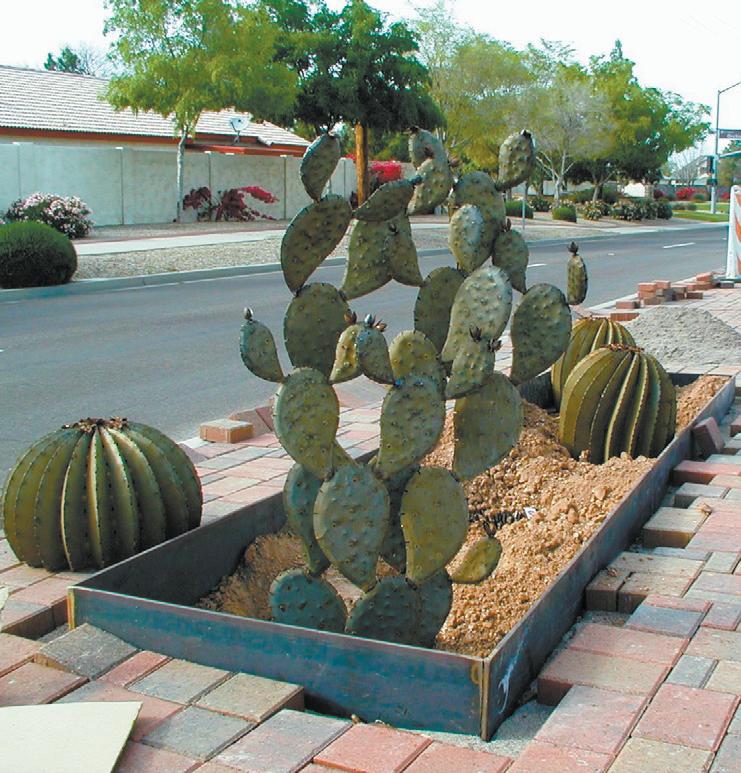 A contractor for the City’s Transportation and Development Department is installing 42 cactus made of steel. Many of the pieces resemble real barrel and prickly pear cacti. They are manufactured by a company called Desert Steel out of Newton, Kansas.