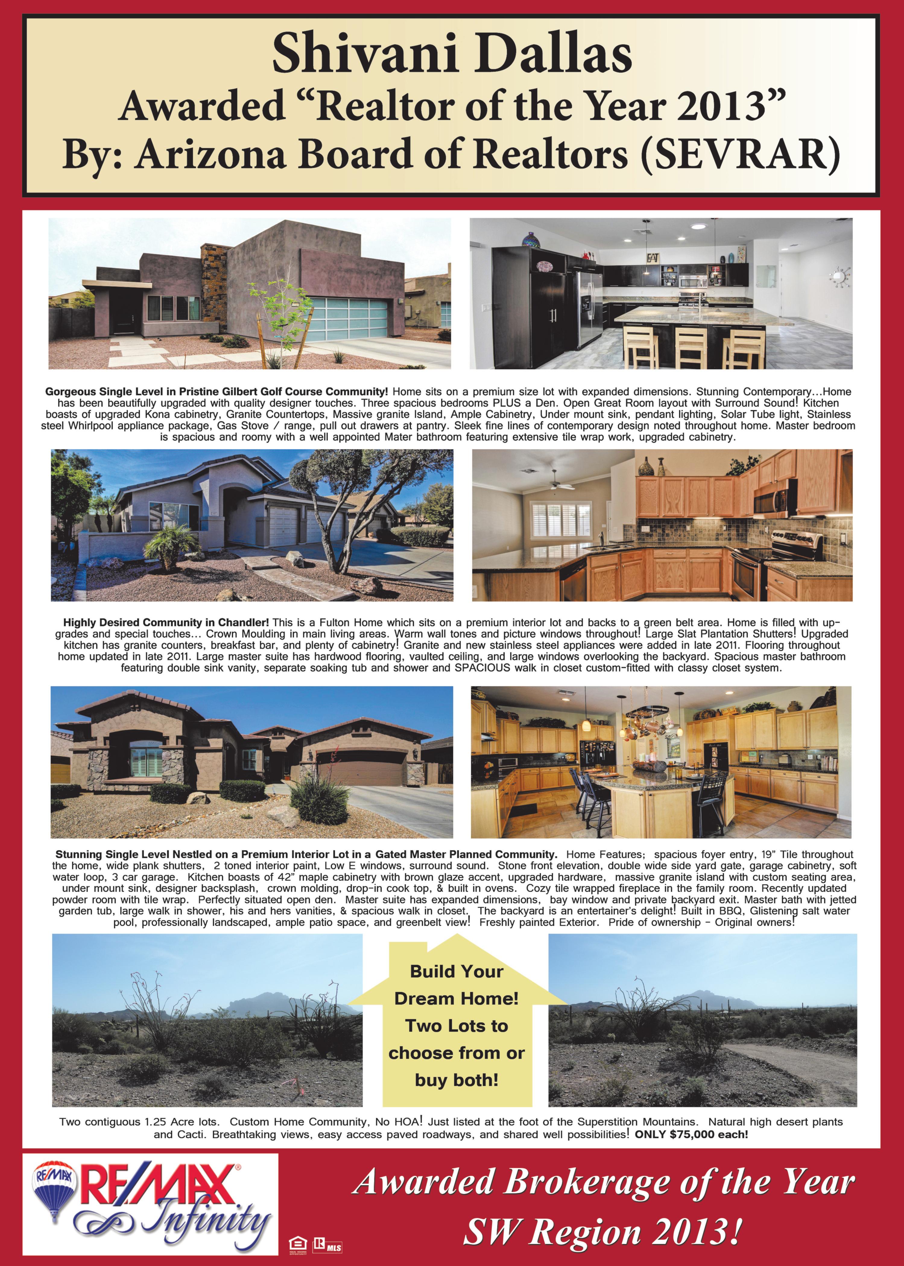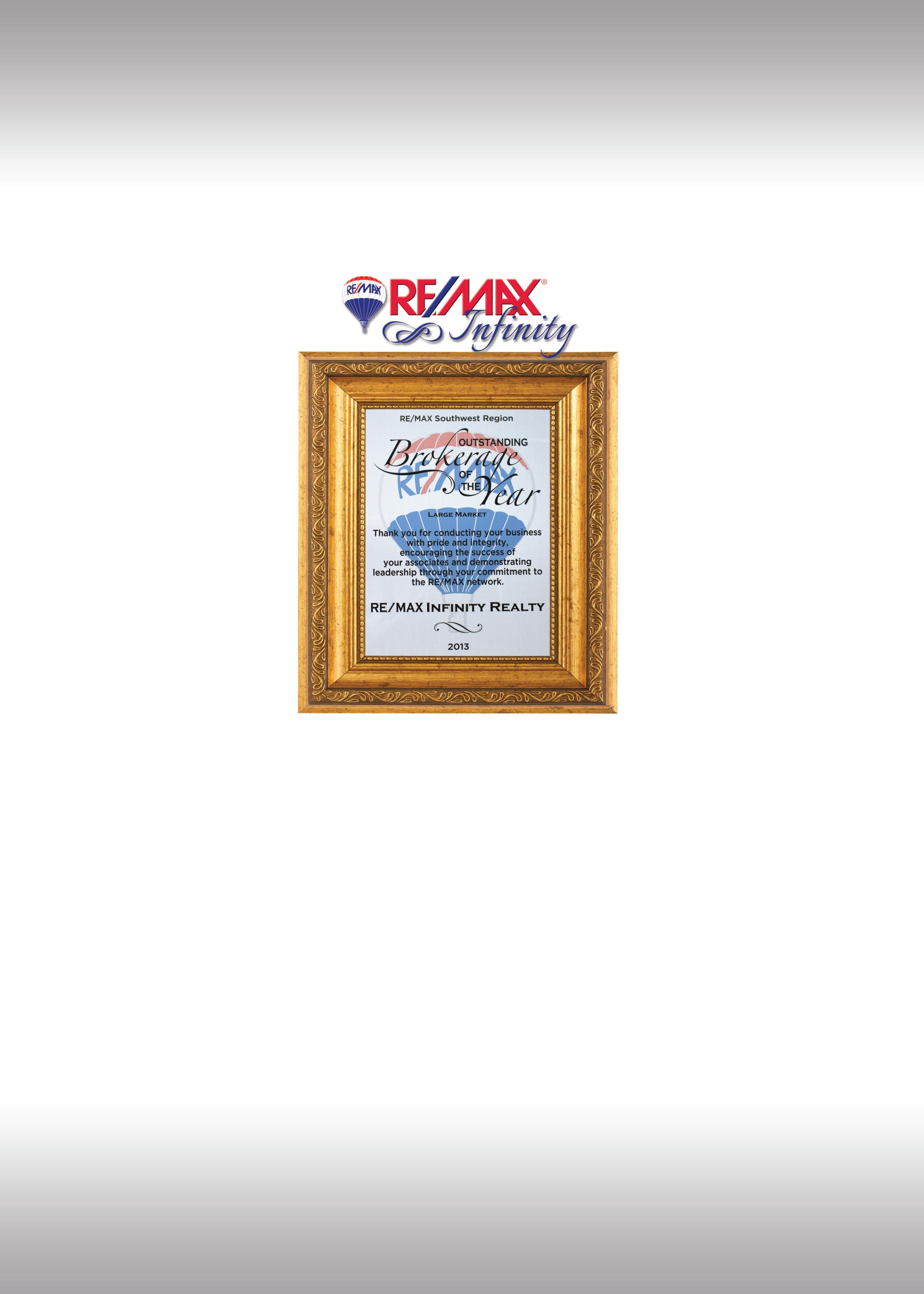 Being named the 2013 Brokerage of the Year for the Southwest Region of RE/MAX is a confirmation of our commitment and a honor we treasure. Thank you to every agent, partner and client because YOU are the reason we do what we do and do it so well.