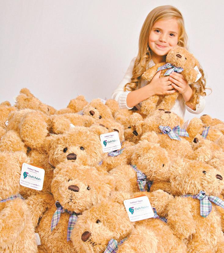 Brown and furry with little stitches on his face, “Charley,” as she calls it, kept Charlotte company at night. Charlotte curiously asked why the bear had stitches, which led to a conversation about cleft palates. Charlotte replied that all babies should have a bear and thus the Charley Bear Hug program was born.
