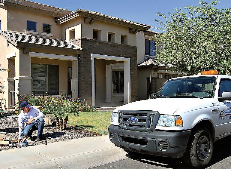 INSPECTOR: Meter Technician Rob Culbertson inspects a water meter at a Chandler home in early June. Submitted photo