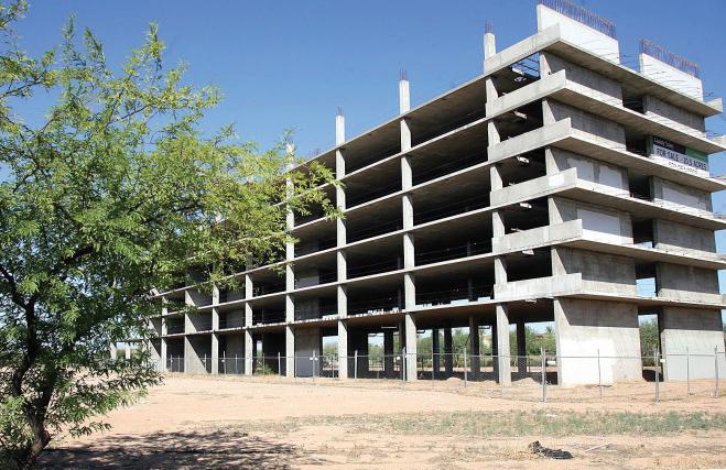 Elevation Chandler project, have stood as a glaring reminder of the recession on the edge of 25.6 acres on the corner of the Loop 101 Freeway and Frye Road. This eyesore on the gateway to Chandler’s Price Corridor began in 2005 and stopped with construction barely begun in April 2006 when developer Jeff Cline ran into financial troubles. Foreclosure and legal battles ensued with Price and Fry Investments LLC, owned by Point Center, currently holding the property but its sale is pending approval of a trustee. The purchase of the Propcor/Macerich acreage to the south requires only City of Chandler approval of the project.