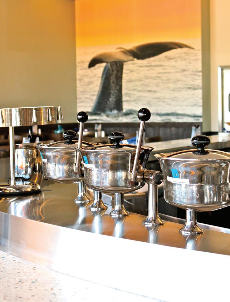 Fragrant cioppino, prepared with shrimp, mussels, clams, Alaskan cod and calamari. Fish and chips, made from Alaskan cod. Louisiana gumbo, lobster macaroni and cheese and shrimp po’ boys.