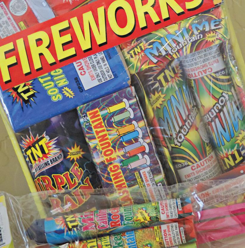 Sparklers, caps, poppers and snakes are novelty items and can be purchased and used throughout the year. Consumer fireworks, such as ground-based sparklers that emit showers of sparks are what are available at the tents and stores. These are the restricted fireworks for use only between Tuesday, June 24, and Sunday, July 6. Finally, the prohibited “aerial” consumer fireworks are the types used in the permitted public fireworks displays only. These include skyrockets and firecrackers that are not allowed by law to consumers.