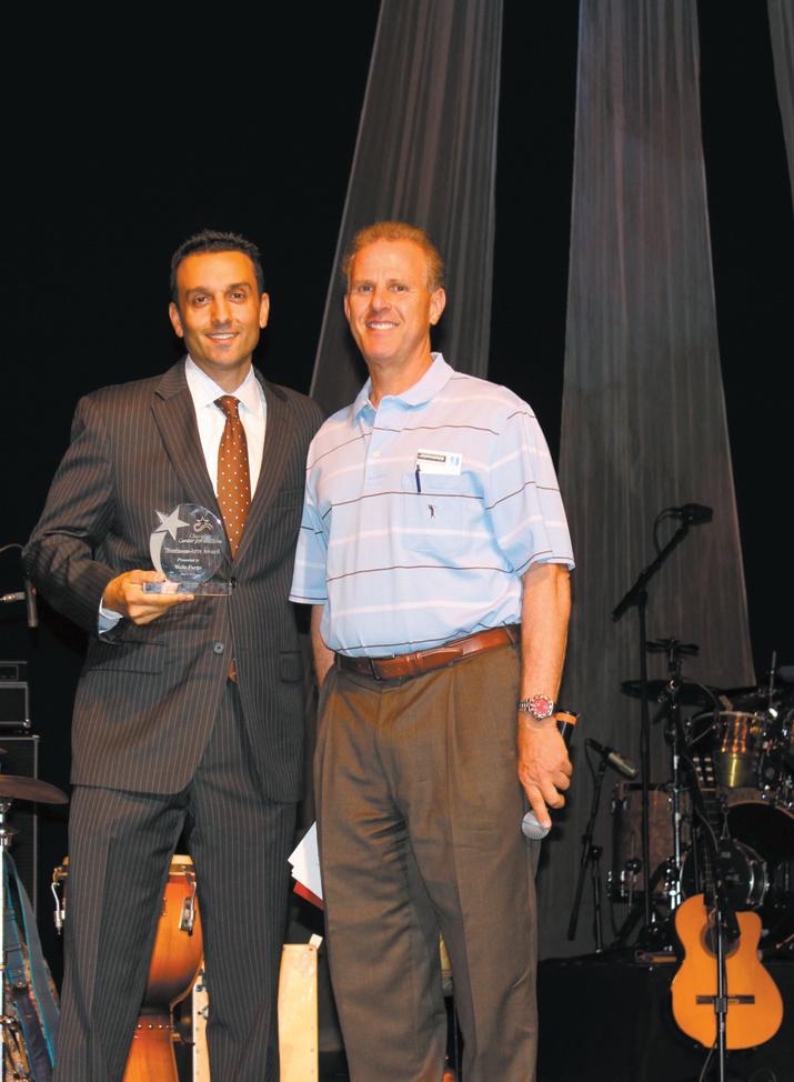 WELLS FARGO: Wells Fargo Advisors Senior Vice President Mahes Prasad and Chandler Mayor Jay Tibshraeny. Wells Fargo received the Business Arts Award for its support