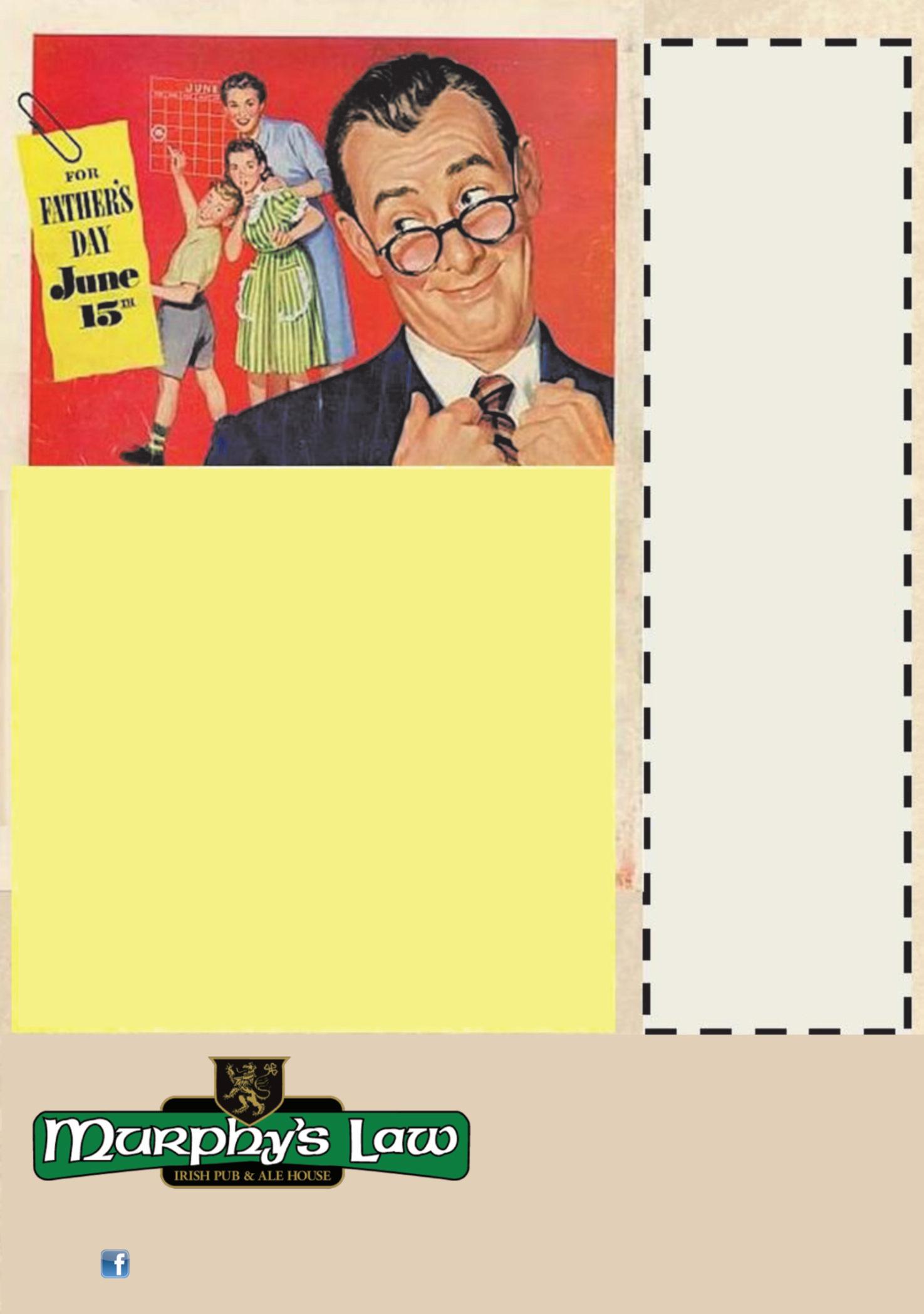At Murphy’s Law Irish Pub and Ale House, dad can eat for free on Father’s Day, with a $20 purchase. Limit one beer and one free menu item up to $10. Domestic drafts are also $2 on the same day. For reservations, call (480) 812-1588. Murphy’s Law Irish Pub and Ale House is located at 58 S. San Marcos Pl. in downtown Chandler.