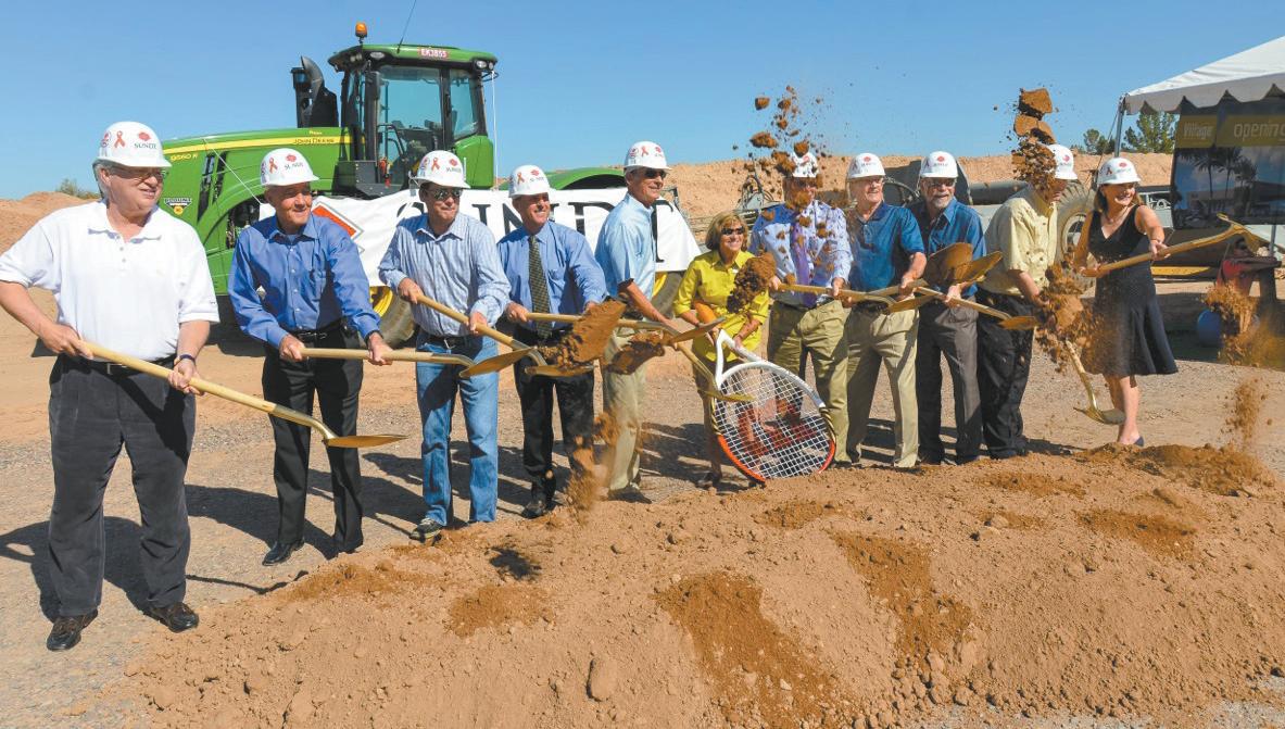 A groundbreaking ceremony was recently held on the $25 million Ocotillo Village Health Club and Spa to be located on the southwest corner of Alma School and Ocotillo roads in Chandler. Joining Chandler Mayor Jay Tibshraeny and Chandler Councilmen Kevin Hartke, Jack Sellers and Jeff Weninger at the event were Bennett Dorrance and Mark Sklar, co-founders of the DMB real estate development company. Scheduled for completion in spring and led by Sundt construction, the 82,000-square-foot Ocotillo Village is creating 250 construction jobs and eventually more than 220 full- and part-time positions. This is the first East Valley location for the private, member-based health club, which joins three current locations in Phoenix and Scottsdale.