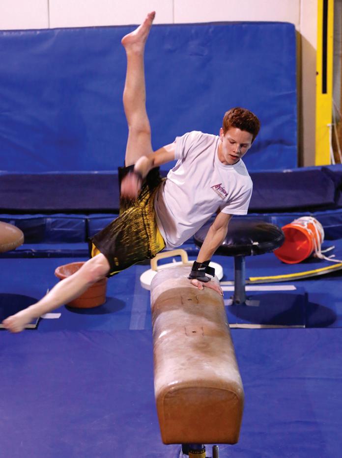 Both Mackenzie and Quinlan recently competed at their respective national events; with Douglas finishing in the top five in the country for the girls in AllAround: floor, vault, uneven bars and beam. “Q” finished seventh in the country on pommel horse, but also has specialty in floor exercise. If Quinlan ever desired to do All-Around for the men, it would be in: floor, pommel, rings, vault, parallel bars and high bar. This is a decision that the young talent can still make as Guthrie notes that males reach their gymnastic peak between 18-25 years, while girls reach ascendancy between the ages of 14-18.